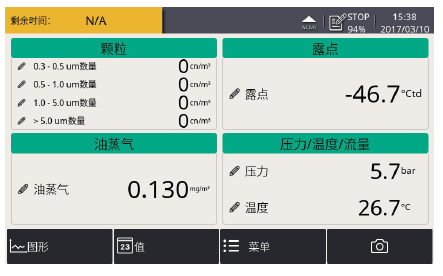 ? 一臺(tái)設(shè)備5個(gè)測(cè)量值:顆粒、露點(diǎn)/濕度、油蒸氣、溫度和壓力(流量測(cè)量可選)。
