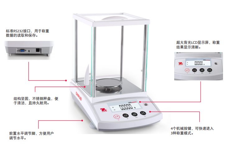 奧豪斯ohaus PR224ZH 內(nèi)校精密分析天平產(chǎn)品特點: