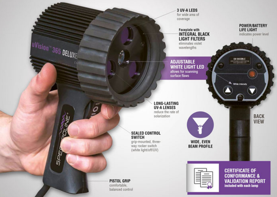 美國(guó)SP UV-365MEH 高強(qiáng)度LED 紫外線燈 uVision-365標(biāo)準(zhǔn)系列高強(qiáng)度LED 紫外線燈-配有三個(gè)紫外LED及一個(gè)白光LED燈泡 防水防塵(IP65),無(wú)風(fēng)扇 LED UV-A紫外燈 滿足EN ISO:3059標(biāo)準(zhǔn) 美國(guó)Spectronics公司生