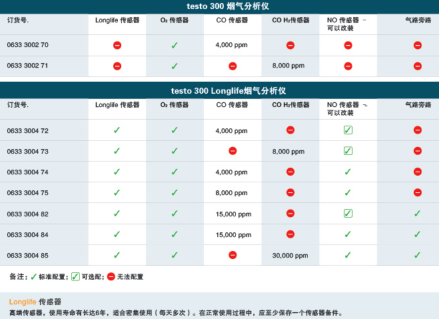 testo 300 LL長(zhǎng)壽命煙氣分析儀基礎(chǔ)款2(二組分)配有 O2 ,帶 H2 補(bǔ)償?shù)?CO 傳感器(測(cè)量范圍0~ 8,000 ppm),可加裝 NO 傳感器,USB 電源。