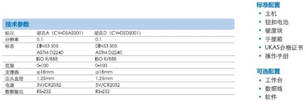 符合標(biāo)準(zhǔn):DIN 53505, ASTM D2240, ISO R/868