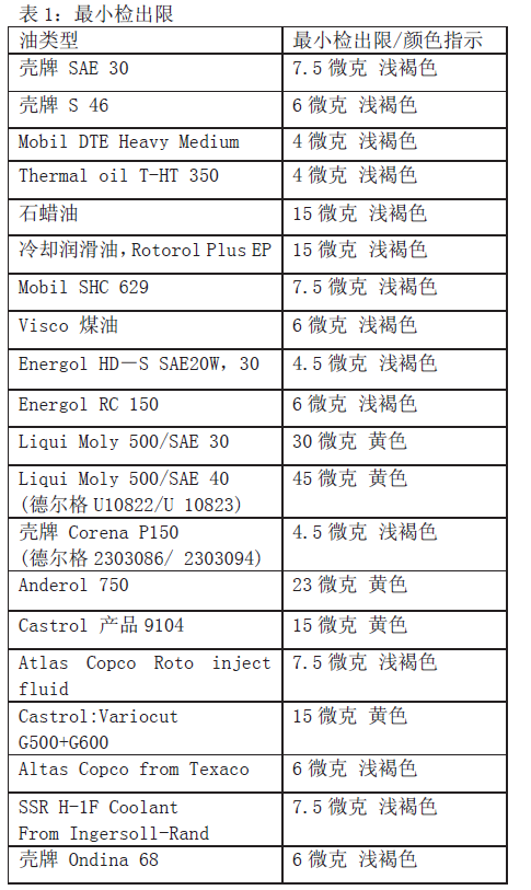 用于檢測壓縮空氣中的油霧,該產品用途為確定壓縮氣體尤其是壓縮空氣中油的濃度。