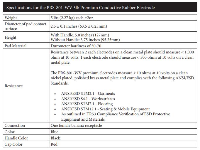 美國Prostat PRS-801-WV重錘式電極 高級導電橡膠電極 美國Prostat PRS-801-WV重錘式電極 是合格或認證新安裝的ESD地板,工作表面和其他ESD控制產(chǎn)品的理想選擇。在今天的工業(yè)中,幾乎所有的