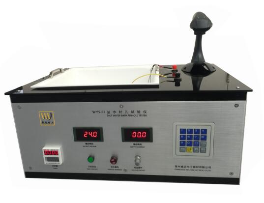 WYS-II鹽水針孔試驗(yàn)儀是我公司根據(jù)IEC60851-5:2011和GB/T4074.5-2008標(biāo)準(zhǔn)規(guī)定而設(shè)計(jì)的一種漆包圓線針孔檢測裝置。本試驗(yàn)?zāi)康臑闄z查經(jīng)鹽水處理后絕緣的缺陷,類似于5.2規(guī)定的高壓連續(xù)性試驗(yàn)。