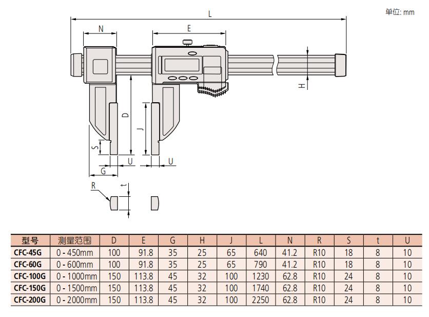 | 552-303-10 | CFC-60G | 0 - 600mm (20.1 - 620mm) | ±0.04mm |