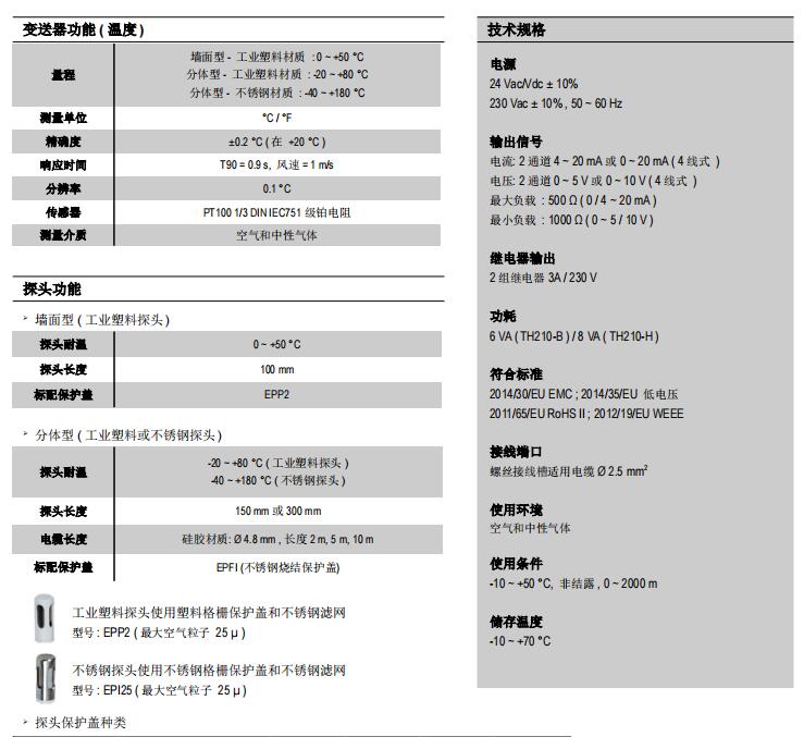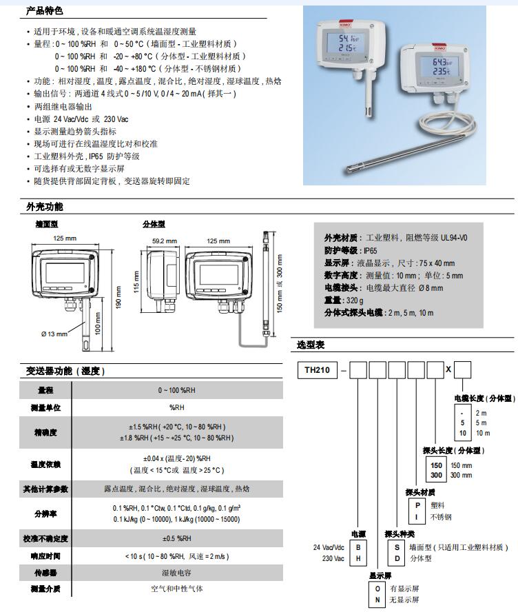 0 ~ 100 %RH 和 -20 ~ +80 °C ( 分體型 - 工業(yè)塑料材質(zhì) )