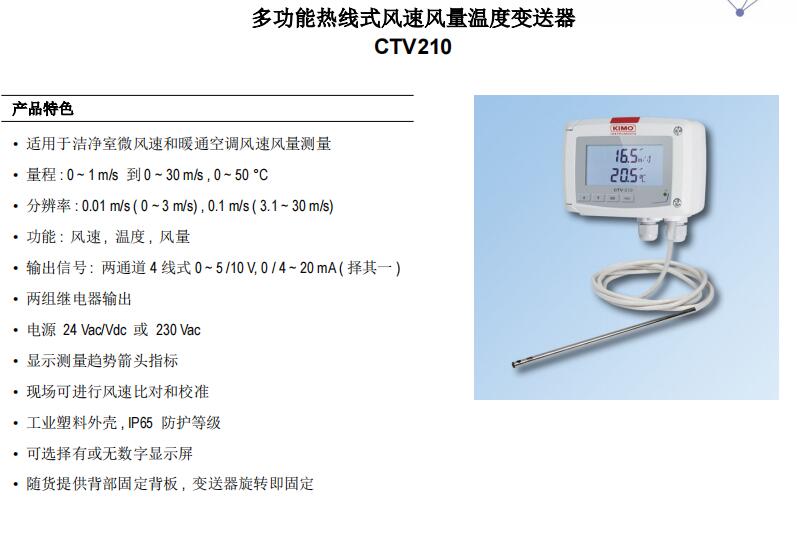 凱茂KIMO CTV210多功能熱線式風速風量溫度變送器