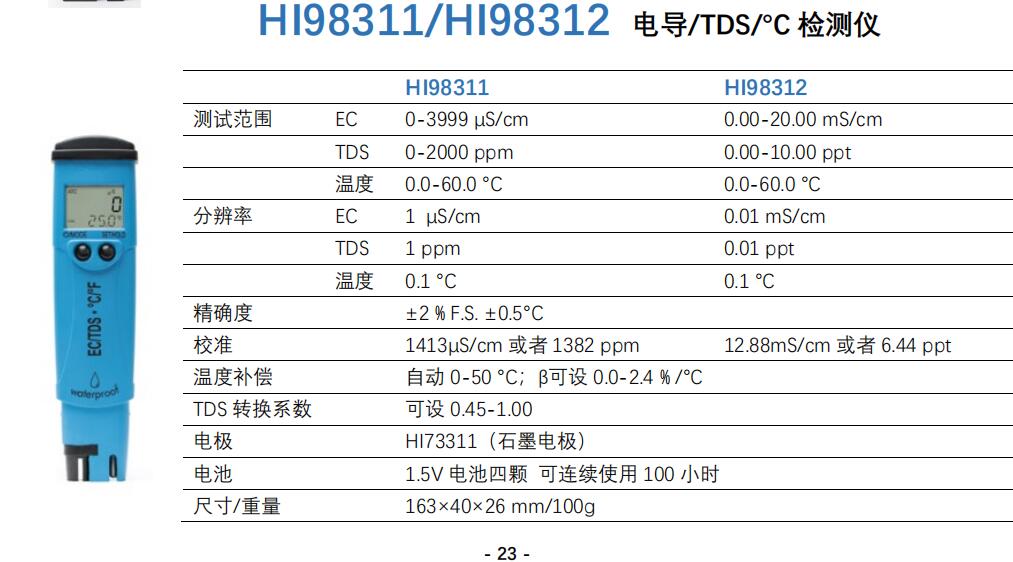 HI98311/HI98312主機(jī),直插式EC-TDS電極,中英文使用說明書 |