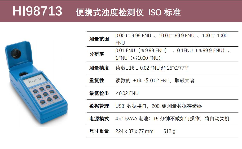 HI98713多量程濁度測定儀(ISO標(biāo)準(zhǔn))
