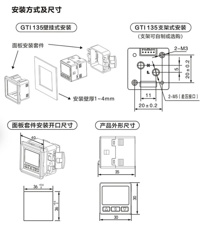 GTI135 超小型微差壓數(shù)顯表差壓量程范圍
