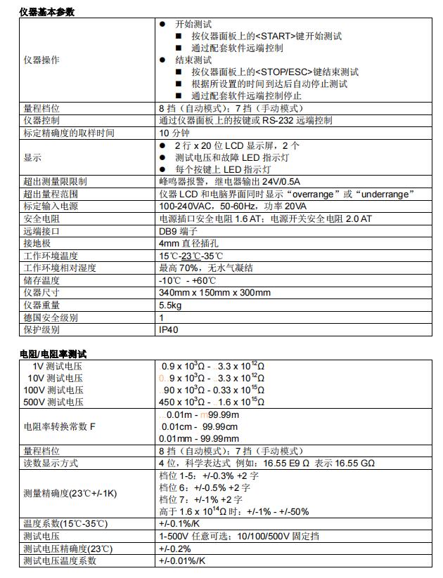 測(cè)試精度:±0.3%+2字(<1.6E12?), ±0.5%+2字(1.6E12?~1.6E13?), ±1%+2字(1.6E13?~1.6E14?), ±5%~±50%(1.6E14?~1.6E15?)