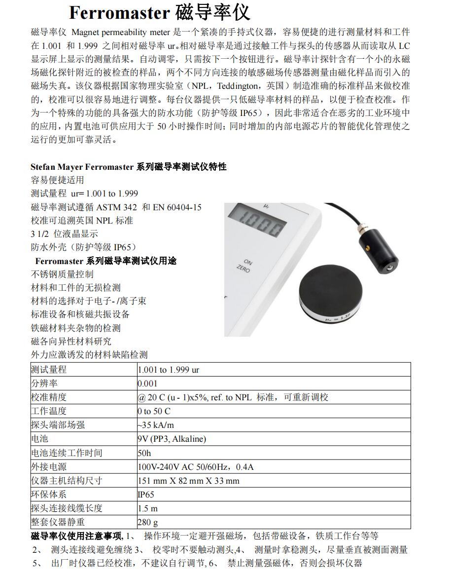 Stefan Mayer Ferromaster系列磁導率測試儀特性