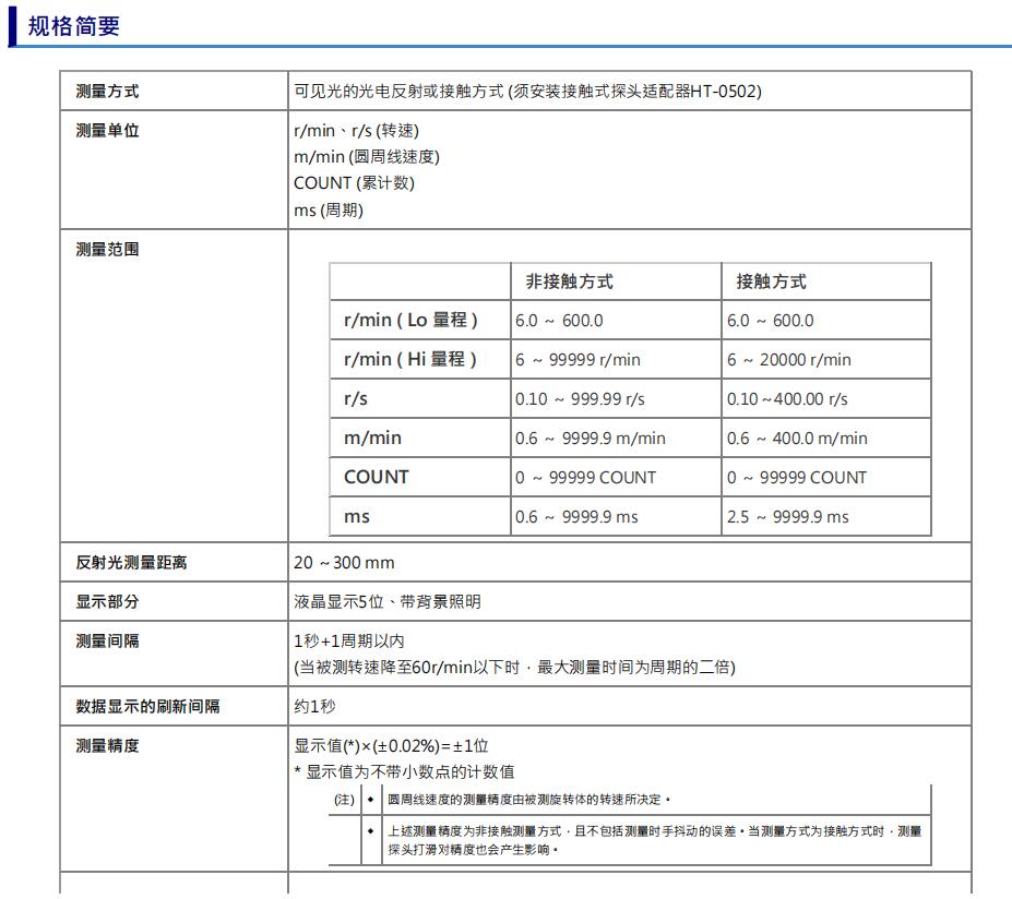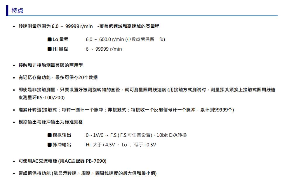 轉(zhuǎn)速測(cè)量范圍為 6.0 ~ 99999 r/min -覆蓋低速域和高速域的寬量程