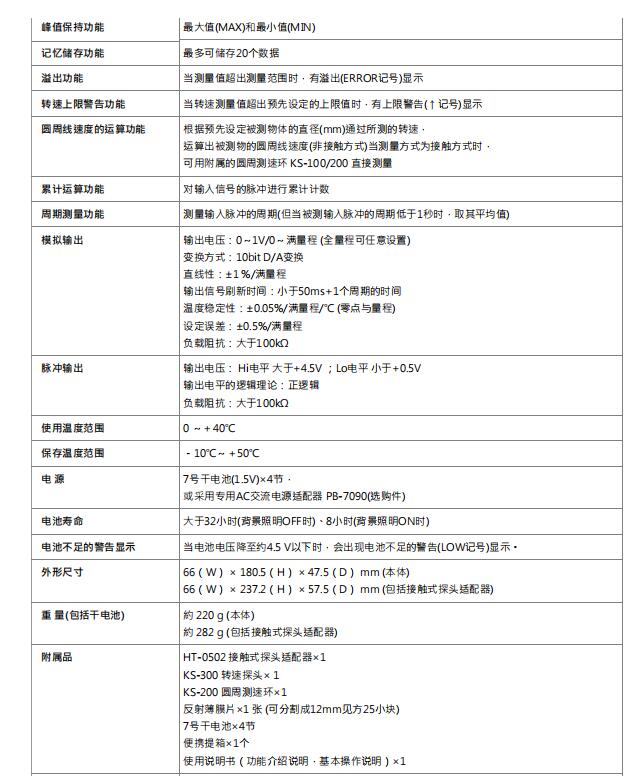 帶峰值保持功能 (能顯示轉(zhuǎn)速、周期、圓周線速度的最大值和最小值)