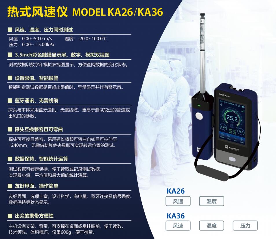 加野Kanomax KA26熱式風(fēng)速儀KA26(無風(fēng)壓)/KA36(帶測風(fēng)壓功能)