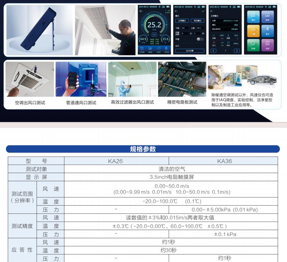探頭與本體采用藍(lán)牙通訊,無需線纜,更易于測試較遠(yuǎn)的管道或出風(fēng)口的參數(shù)。