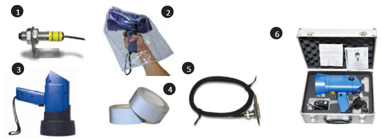 1.ROLS-P激光傳感器,2.防水袋,3.橡膠保護罩,4.T-5反光條兩卷,5.脈沖輸入輸出連接線(BNC),6.包裝箱
