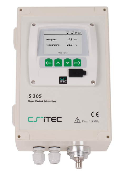 S305露點(diǎn)監(jiān)控儀, -20°C ... +50 oC,6 mm 軟管 快速連接,G 1/2” 螺紋,50 bar,1 x 4 ... 20 mA,電源24VDC,2 繼電器輸出 |