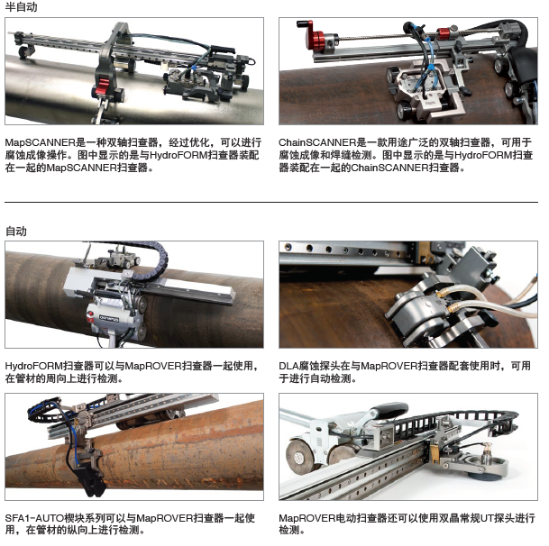 SFA1-AUTO楔塊系列可以與MapROVER掃查器一起使用,在管材的縱向上進(jìn)行檢測(cè)。